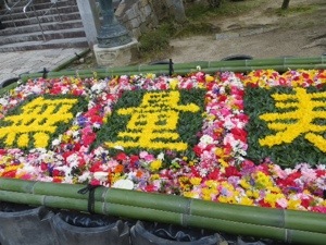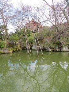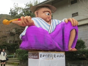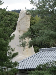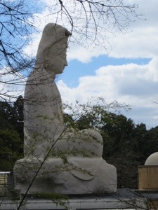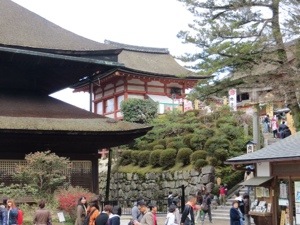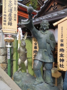There are a number of lesser shrines. People line up to drink from the small Otowa waterfall. We passed. Also encountered the Japanese Cupid and his rabbit. You can guess what they good for. The Japanese like to rub things even more than the Chinese. There are stones and statues and strange little lawn ornament size sculptures that wear aprons. Reiko will have to explain.