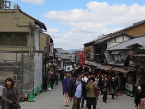 First stop was the Kiyomizu-dear Temple complex. It is probably Kyoto’s top attraction. We got there early and were thankful. The main hall is huge and suspended in the air with a massive timber foundation. The temple itself was founded even before Kyoto in 778. To get there we needed to cross some of the Otani Cemetery. Many folks were washing the memorials and placing flowers. I assume that is part of the holiday activity.