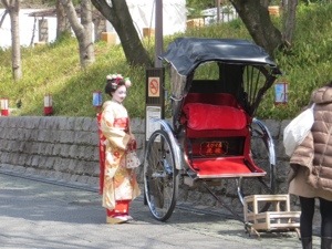 Encountered a number of young girls in Kimonos. I took a group picture and they thanked me. One beauty said she loved me. It was a very short affair. There were also Ninja pedi-cab drivers. The camera did not rest all day.