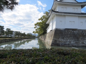 Finally turned south and walked through the colorful Yasaka-jinja shrine. I bought some street food. Peggy passed. We soon walked through the old Gion Geisha street. Plenty of tourists, no Geishas. Caught a bus to the first Shogun’s part time palace, Nijo-Jo Palace.