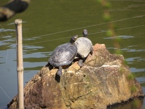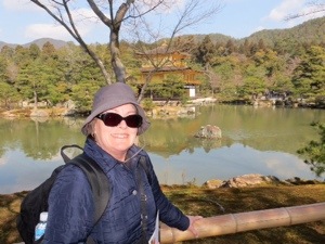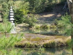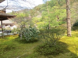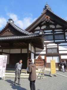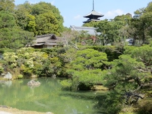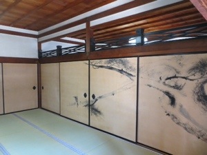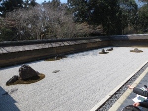 We walked a mile to another temple Ryoan-ji created in the 15th Century. Its Zen rock garden is probably the most famous in Japan. There are 15 rocks. It only 14 can be seen at any time. The crowds were sparse and we could actually sit and try to count them all. The temple rooms and their painting were wonderful as were the gardens.