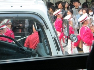 The bus ride and to Kyoto station was long primarily because we managed to get caught up in a marching band completion that shared the road with us. Peggy got some great pictures of the kids playing their big brass band instruments in the middle of the traffic. My favorite group was dressed in Penguin suits. I guess they are the Fighting Penguins. Plenty of recognizable music played by the 100 or so bands. Enjoyed hearing Sousa’s Stars and Stripes Forever.