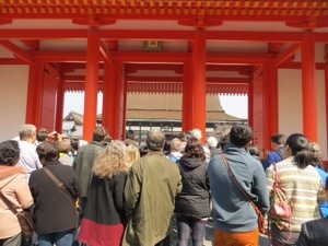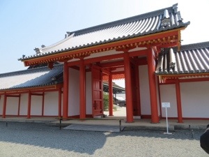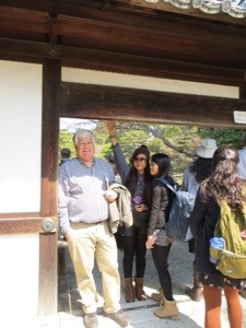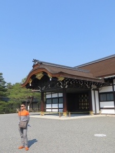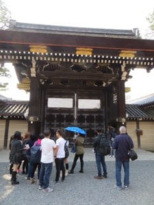 We had reserved our visit to the Kyoto Imperial Palace several months ago. Kind of like a visit to the White House except the Emperor lived here or close by for about a thousand years. He visits occasionally like when George W. Bush visited him here a few years ago. Since then they check American passports carefully. The CalTrans orange you see is designed to keep away evil spirits. At least Dick Cheney never visited here.