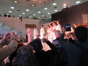 We walked to the textile showroom in time to watch a Kimono fashion show. Some of the silk inventory was too good to pass up. We later found ourselves in the Nishiki shopping area. It was like a Japanese version of the Turkish Grand Bazaar except they did not yell, pinch or push. We never found the end of it but did manage to check out several hundred shops before surrendering.