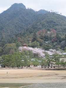 When we reached Osaka we found out that the Shinkansen train that we were waiting for was not available on the rail pass. Up and over to another train track and an hour wait. We reached Hiroshima around 3:30 and caught a local to Miyajima Guchi where we boarded a Ferry for a quick ride to Miyajima Island. It is considered one of the three most picturesque places in Japan.