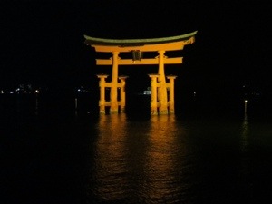Peggy collapsed for a little bit while I worked on the mechanics of travel. We gave our very considerate hotel manager/owner a small gift. He grinned from ear to ear. After he stopped bowing and thanking me he returned with a couple of the local Japanese stuffed donuts and a rice scoop. The rice scoop is one of the town symbols. The tame sacred deer and the gargantuan red tori are other signature sights in this town which receives its share of Japanese and Foreign visitors.