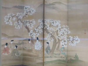 It seemed that cherry blossoms figured into almost every painting. There are centuries old paintings of courtiers out viewing and having a Hanami picnic. Every courtesan seems to want to pose under cherry blossoms. The Cherry blossom madness has a long pedigree.