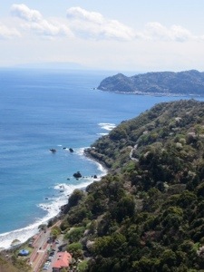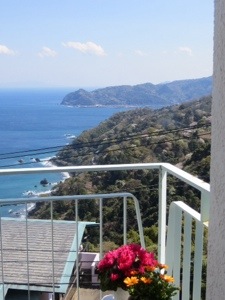 We climbed out of Atami downtown to Reiko’s flat in an apartment building built atop a cliff. The flat is compact and has a stunning view or as my Dad used to say, “a million dollar white water view.” The terrain is like Monte Carlo or Laguna without the glam. Actually Atami is a resort town famous for its seaside location and hot springs. Emperors and Shoguns had Atami water brought to them in Tokyo whenever they wanted a lift.