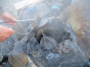Returned to Atami and checked in to a nice hotel with plenty of space in the room and comfort. We walked to the seaside area and toured a bit of the town. There are small hot springs that look like mini-volcanos. People use them to cook eggs and stuff right next to the sidewalk. I almost cooked my hand by reaching too quickly for a wooden lid. Reiko took us a wonderful restaurant that served excellent pork dishes. I think she is a bit concerned about our limits. I told her that we avoided dishes that wiggle or squirm. The pork was a safe bet.