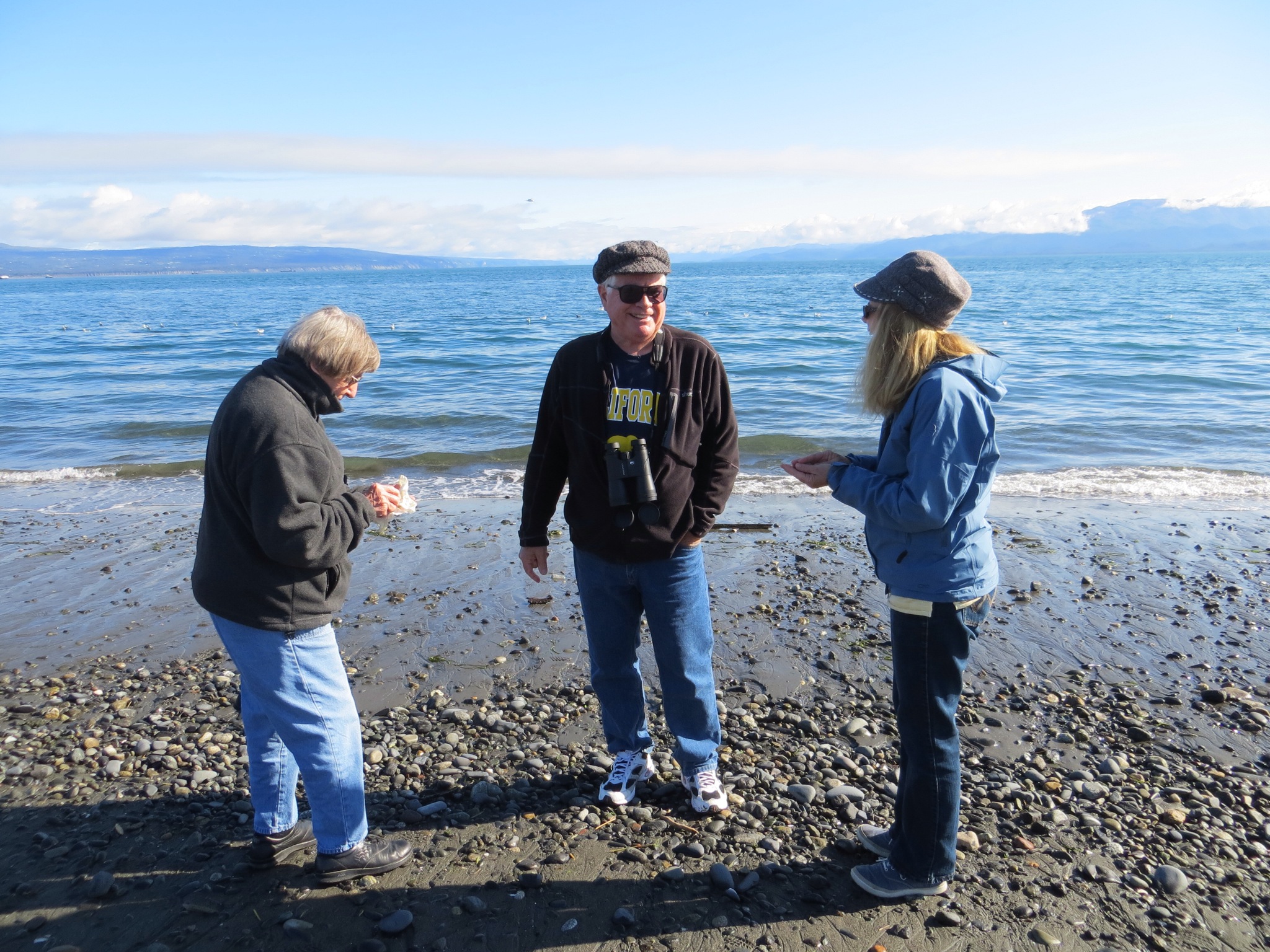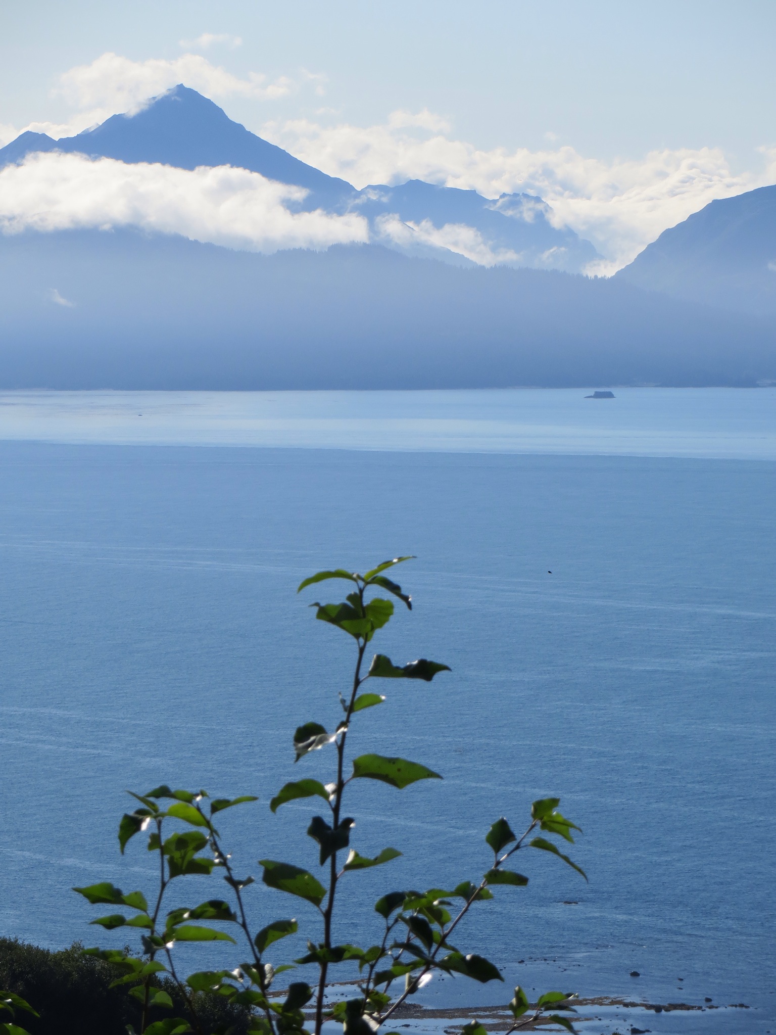 The sky became more and more blue as we drove the last 40 or so miles to Land’s End on the Homer Spit. Homer is unbelievably scenic and is located on the eastern shore of Kachemak Bay on the tip of the Kenai Peninsula. We stopped quite a while on an overlook before driving to the end of the spit that protrudes into the bay. We missed the otters around the piers but managed to find a number of rocks to carry back.