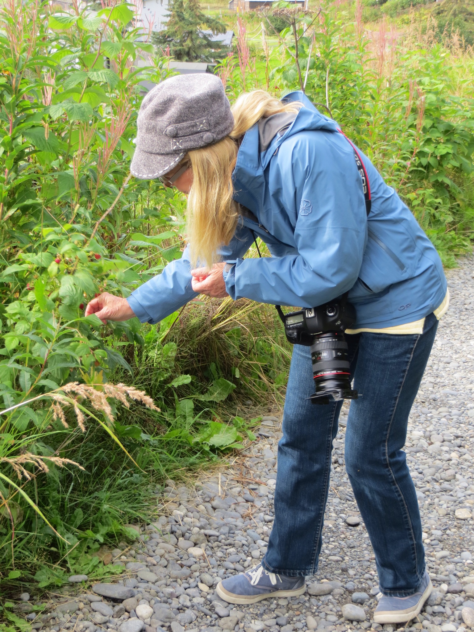 Peggy and Leslie are currently trying to take the perfect picture of the fireweed that is in its seasonal final flowering before the snow begins.