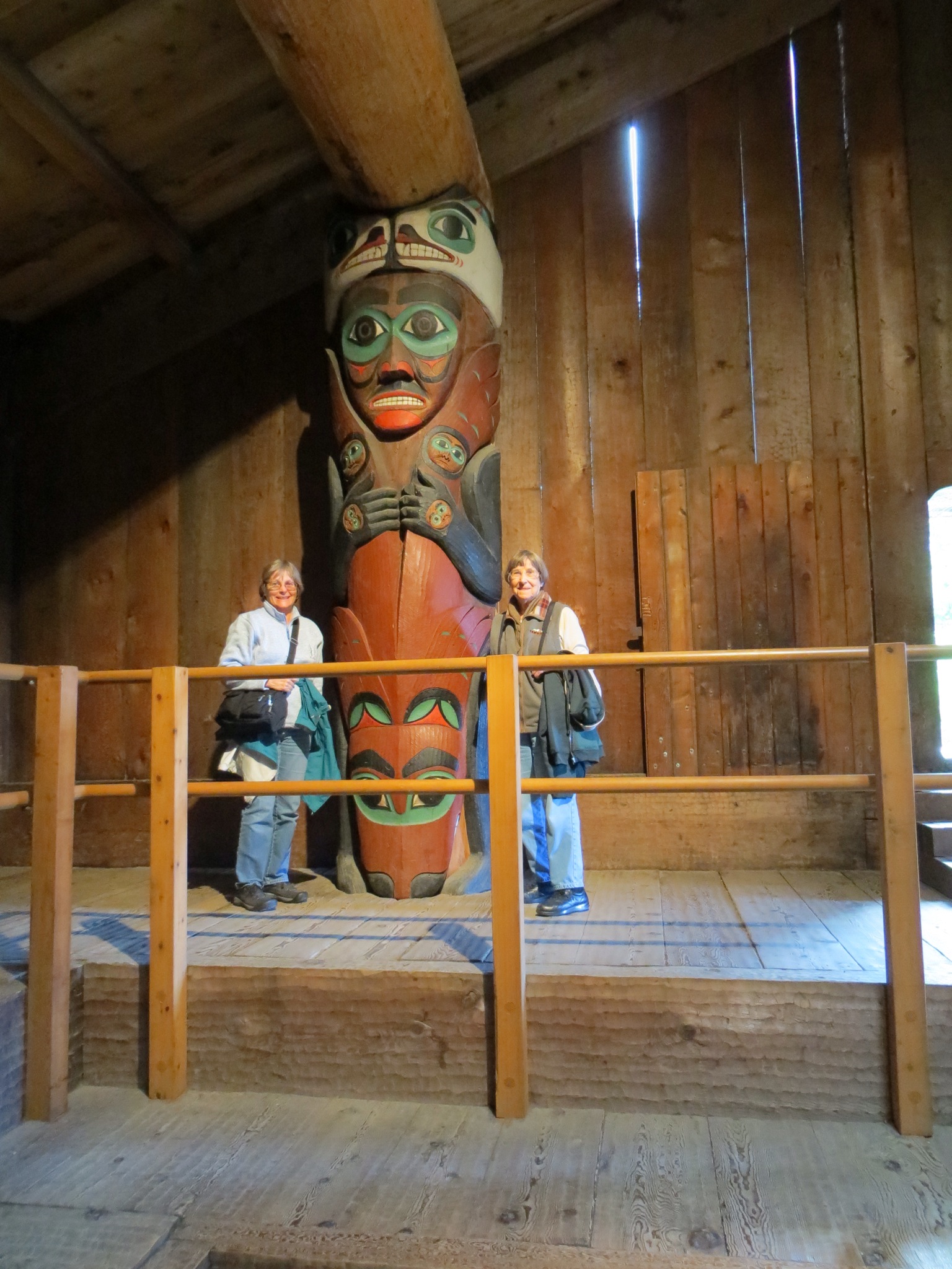 The location was ideal with the totems looking out over the sea. There was a replica of a potlatch hall with good explanations of the totems to illustrate the walk along the seashore. Of course, we are in the midst of a temperate rain forest with green everywhere. The nurse trees supply a place for the young conifers to grow in the mostly soil free beach front. Great pictures.