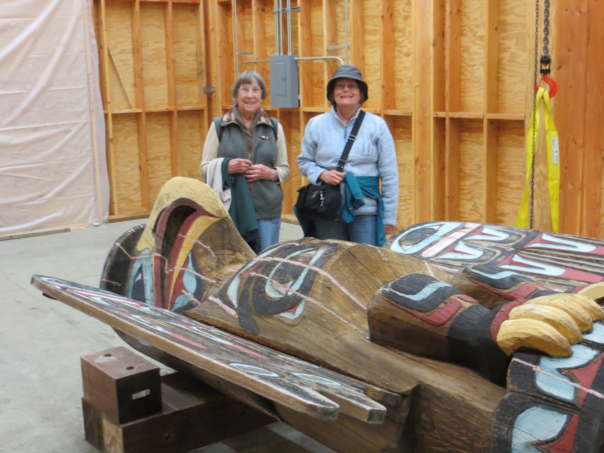 Upon landing Leslie and Dave set out on adventure in a four man Zodiac boat. Our adventure for the day involved navigating the public transportation system out to Totem Bight State Park on the outskirts of the city. After stopping at the Safeway and Walmart we reached the park. The site contains around a dozen restored and maintained totem poles.