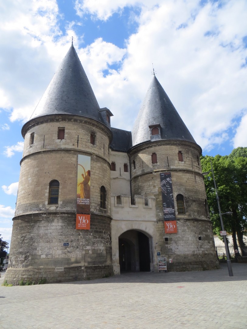 We were fascinated by the elaborate mechanical clock with some 90,000 parts from the mid 19th Century until we saw and heard the carillon clock from the 1300’s that still rings the bills and keeps accurate time. It is claimed to be the oldest chiming clock in the world that still works. We have many pictures. We didn’t go to the tapestry museum that housed the cathedral collection. But we did wander into the courtyard of the fortified bishops house behind the cathedral. The wonderful turret towers were added after riots aimed at the bishop made him nervous.