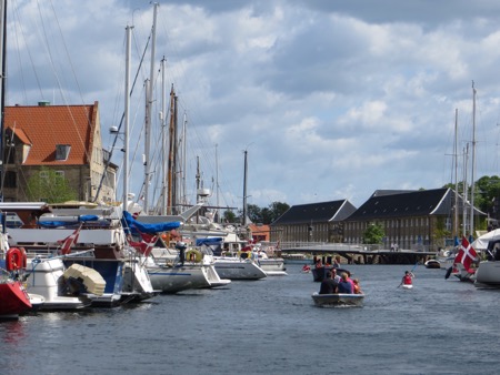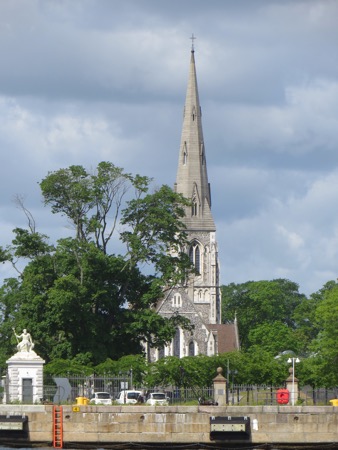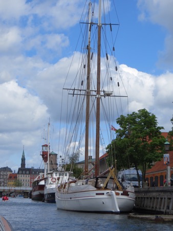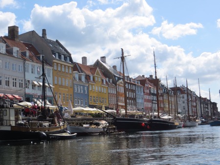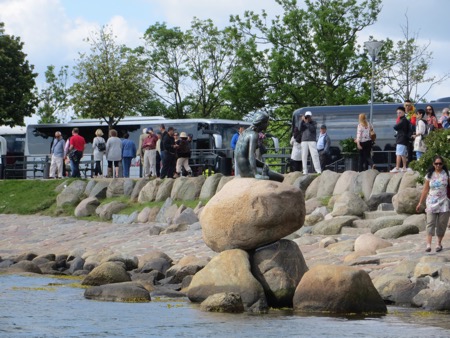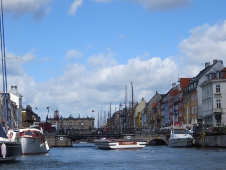 Started today with a big breakfast. Scandinavian’s don’t mess around with petit dejeunie. It was some of almost everything except the liver pate. I find that tough at 8 AM or at almost anytime. We were on the road to the end of the commuter train line some 10 miles from the center of Copenhagen. We were helped in the purchase of tickets and where to get off by young Danish couple who spoke much better English than I do. A few minutes on the train got us downtown and a quick ride on the subway got us to the king’s harbor square and the canal boat tours. Boarded out tour boat for a one hour orientation on the canals. The only let down was the fat tourist trying to sit on the little mermaid’s lap. It kind of ruined the short photo opportunity from the boat. The rest of the venture was fine and we could find plenty of church spires to photograph.