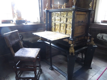 Christian ruled Denmark some 60 years in the time of Queen Elizabeth. As a Renaissance Monarch, he lived to the fullest. He seemed to do everything in excess. Rosenborg Palace in the center of Copenhagen was his favorite place to live. Yesterday’s Fredericksborg Palace is far grander in scale and Christian preferred the more intimate Rosenborg. Perhaps it was because his wife, the Queen could be upstairs working on her lathe while his mistress was a couple doors away on the same floor. Remember that royal marriages were arranged and love had nothing to with it.
