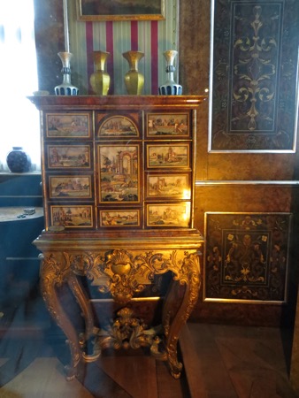 I think he found Rosenborg comfy because he had is own private toilette off his bedroom. This is one of the first I have ever seen in my extensive search over the years for royal potties. He also had a cool peep hole in his boudoir to observe any nefarious activities in the rooms next to his bedroom. The room with mirrors on the ceiling and floor intrigued me to some extent. The artwork reflects Christian’s interest in the opposite sex. It appears that he had a healthy appetite for more than just food.