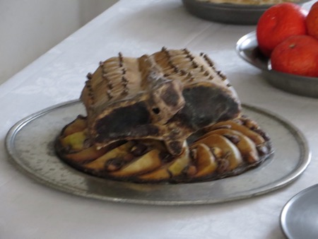 Pictures below are for the vegetarians. Plenty of fish and even a bird  cake for special guests.