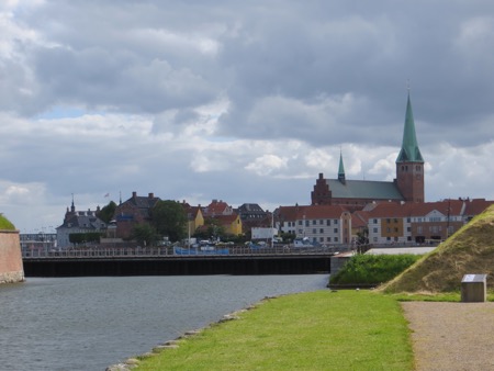 Kronborg was built to dominate the narrow passage between Sweden and Denmark. The Danish kings from the 14 hundreds on charged a toll for passing ships. It became a serious fortress by the time Christian became king but he left his mark all over it. We were amazed that you can rent the ballroom and the wine cellar for private parties. It would be fun to fire a few shots towards Sweden.