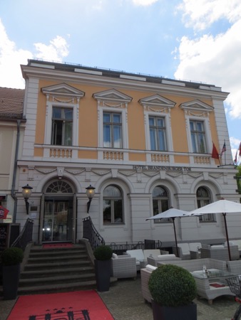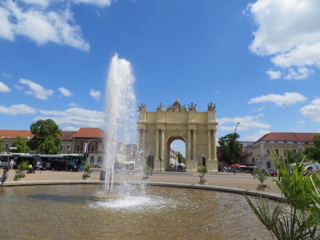 Left cloudy Lubeck around 8:30 and reached mostly sunny Potsdam by noon. Our hotel is very nice and located right next to the triumphal arch erected by Frederick the Great. We don’t always stay in Four Star places but the price was right and we don’t have kids with us.