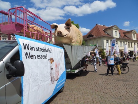 The pig is part of a vegan protest.