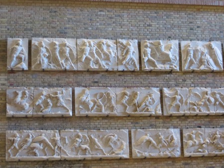 Right inside the door puts you back in the time of Nebuchadnezzar. The Ishtar Gates from Babylon loomed up before, around and above us. Impressive and I am glad the Germans removed this unique artifact from Iraq before the maniacs had a chance to destroy it. The same can be said for many of the antiquities although I do feel sorry for the Greeks. The Brits got the front  and back of the Parthenon, the Germans got metopes on the sides. They made it through the destruction of WWII. The same cannot be said for large parts of the collections that now reside in Russia or the items that were damaged and in the process of restoration. Unfortunately, the Pergamon Altar will not be available for viewing until 2019. There was plenty of other things to see.