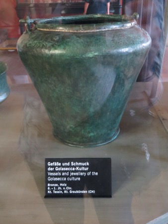 There was a floor dedicated to Neolithic and Medieval German and Northern European archeology. While using limited energy to walk the collection was not in the plan, we were glad we did. We encountered a cabinet with 500 BC pottery from Graubunden. This is the region of Switzerland that Peggy’s family comes from. The pottery was the rich green that we seem to collect. Now we know why.