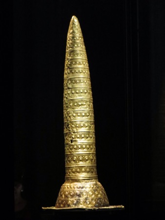 This is not original cone head. It is a calendar from 1000 BC that a German Merlin used to wear to keep track of the days and years. It does all the stuff that the 50 ton Mayan calanders do and you can wear it on your head. It is even made of gold.