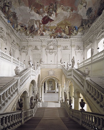 By the early 18th Century, the Prince Bishops who ruled this part of Franconia decided to build a more modern crib on the other side of the river. So on the hill above the old 11th Century Romanesque Cathedral or Dom, they built a new Residence. Needless to say they spared no expense. Neither did the RAF that firebombed the city in March of 1945. The Nazis tried to hold the town against the Americans for four days which added to the destruction. The world’s largest ceiling fresco by Tiepolo was in danger of destruction from the elements. A young 2nd Lieutenant in the U.S. Army assigned to protect Monuments somehow managed to build a temporary roof over the exposed parts of the structure.