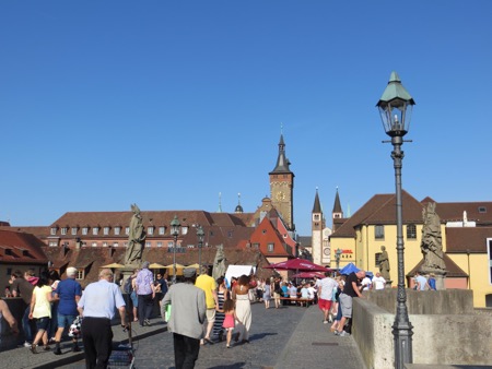 We are in Wurzburg, a two hour drive south of Weimar. The sun is out and hot by German standards. Since it is Sunday, the Autobahn was almost empty. We still managed to get passed by many going much faster than my sluggish 80mph or so. Tom found the hotel and we got oriented.