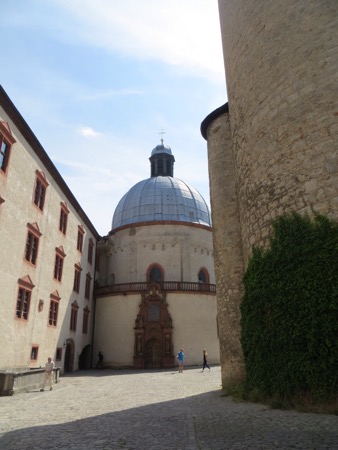 We drove up the Festung Marianberg, a fortress dedicated to Mary and featuring the bishop who paid for its construction in the late 17th Century. The place is huge and overlooks the Mainz River. Vicki and Dave will soon be found there on a cruise ship. We missed them by a week or so. Peggy told me to not let on to too much stuff or I might spoil it. Let me just say to bring comfortable walking shoes, sun hat and sun block.