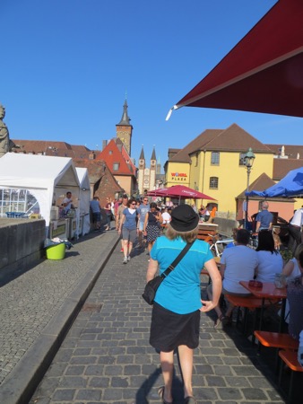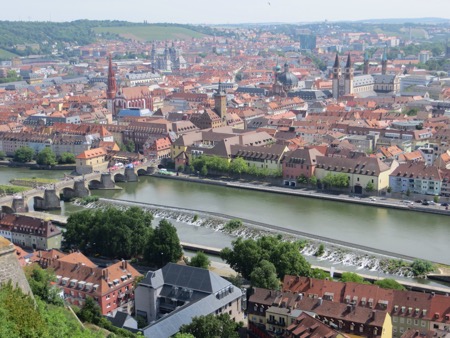 We are in Wurzburg, a two hour drive south of Weimar. The sun is out and hot by German standards. Since it is Sunday, the Autobahn was almost empty. We still managed to get passed by many going much faster than my sluggish 80mph or so. Tom found the hotel and we got oriented.
