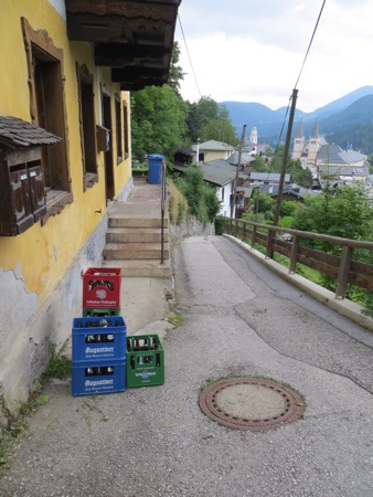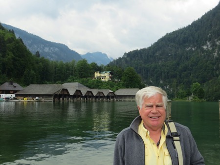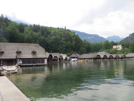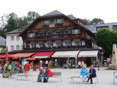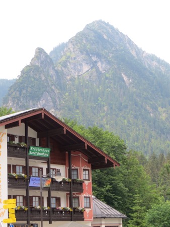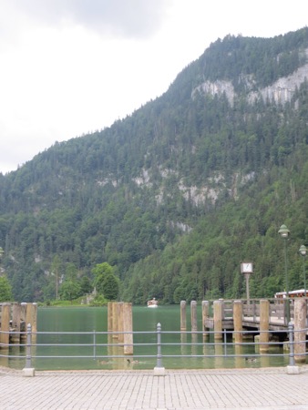 We reached the Alps after bypassing Munich. We were too early to check in so we headed for Konigsee or King’s Lake. It is located in the Berchtesgagaden National Park that is a few miles from our hotel. The setting was dramatic but the carnival environment crammed with tourists was a bummer. I now know what Yosemite would look like if there were no restrictions on commercial activity. We did encounter some American hikers who had been using the huts in the Park’s backcountry. The huts had meals, beer, showers and beds. They thought it was quite nice. The lake itself reminds me of an overdone Lake Arrowhead. Nice to look at but not to enjoy.