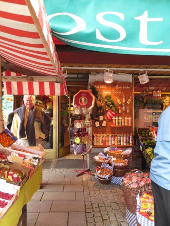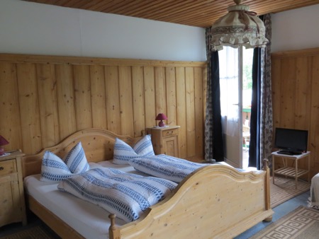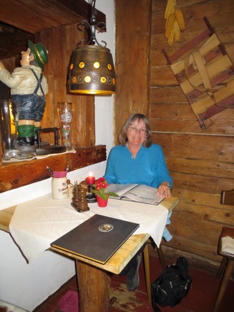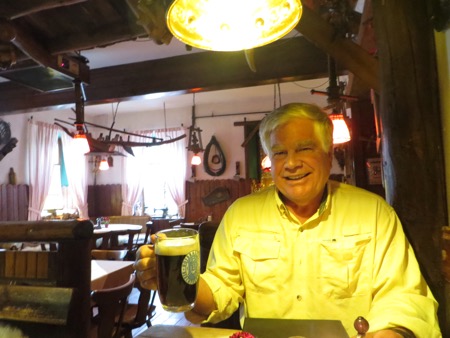 Just finished our dinner in our small hotel. The host is decked out in full Lederhosen and the decor is what I have seen in movies about German restaurants most of my life. Huge chunks of wood and leather and sheep skins covering the benches. We ordered spare ribs and got the spares as well as the rest. It was a massive meal accompanied by the local brew. Peggy resisted drinking from the glass boot. Most of the clientele spoke English. That’s OK since I didn’t feel ready to break into patriotic Gemütlichkeit singing. I was too full.