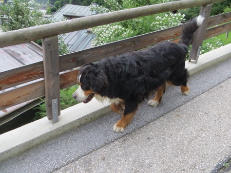 The carnival at the Konigsee reminds me of Ronald Reagan’s proposal to sell Yosemite to Disney, and put in a tram to the top of Lookout Point. What a visionary! The view back into the Alps is a wonderful shot–very brooding and moody. Nice to see the Bernese Mountain dog in situ.