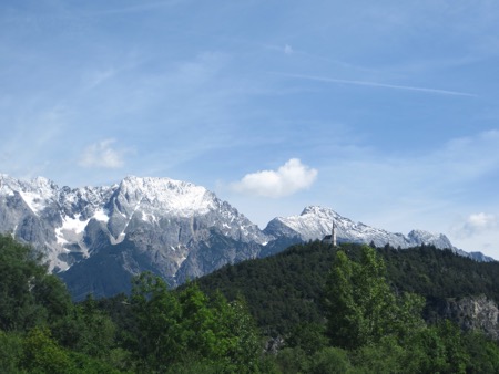 The shortest way to Lake Bled in Slovenia was to retrace steps to Munich and then south to Salzburg. We elected to drive a while longer and enjoy new scenery. It was a good choice. We crossed Lichtenstein in a few minutes and found ourselves climbing through the Tyrolian Alps surrounded by fantastic scenery. The driving was a bit of a challenge but James Bondish in our little Peugeot.