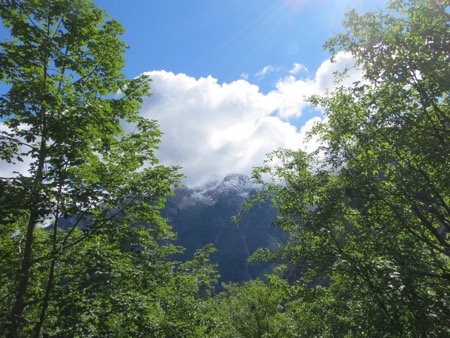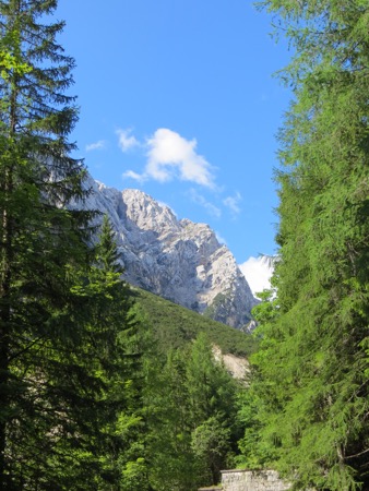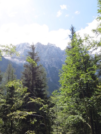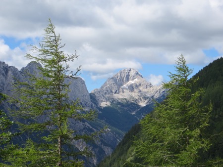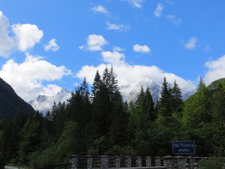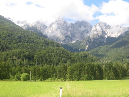 We drove briefly on the freeway towards Austria and then turned off Kranjeka Gora and headed for the Vrsic Pass. We would climb and descend using some 50 switchbacks. The road was built by Russian POWs during WWI. We were warned that the turns are cobbles to improve traction. There were tour buses so we weren’t too concerned.
