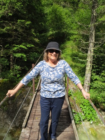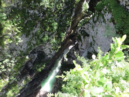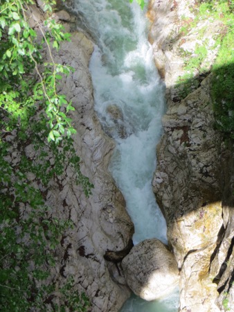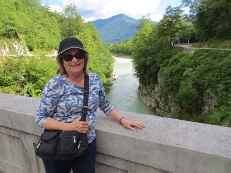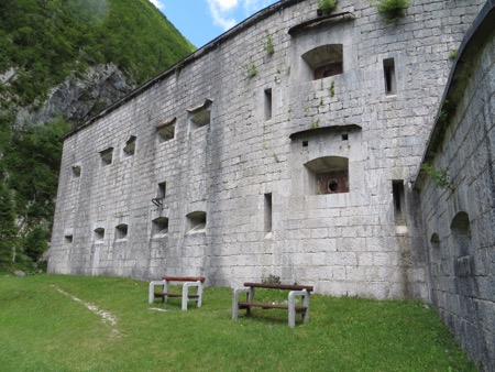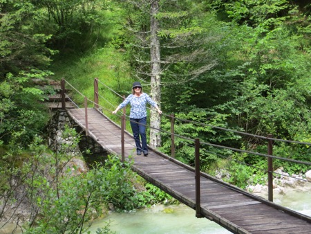We jumped around on suspension bridges and had a nice picnic and took plenty of pictures as we descended. We finally emerged from the mountains near a village called Trenta. The residents used to have to cross those mountains to shop or see a doctor. Tough folks. We stopped at a stone fort called Kluze. The site was originally defended by the Romans and then everyone else including Napoleon when he was fighting the Austrians. We will later cross over “his” bridge a short drive from our hotel. It has been remodeled a little since it saw plenty of action with Tito’s Partisans in WWII. What is not easy to see from the front of fort are the dramatic canyons behind it. Peggy could take pictures looking down. I kept my distance. Oh yes, the Venetians had also used it to fend off the Turks. The place has a bit of history attached.