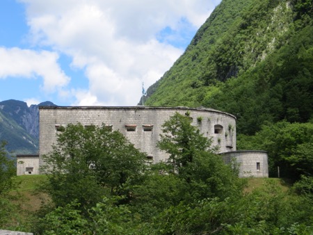 The road was built by those 10,000 Russian prisoners. Not all made it back,to Mother Russia. at least 600 died in one Avalanche. Actually some 60,000 combatants died in avalanches during the fighting between 1915 and 1918. Between the Italians and the armed forces of the Austro-Hungarian Empire, some 600,000 casualties will result from fighting on the Soca Front as it is known in Slovenia. To supply the “Austrian” forces the road was built along with an arial Tram system for use in the winter when snow closed the summit road. The goal was to keep Italians out of Vienna. Having crossed most of that ground in the last couple days, I would say that it would not be easy for any army.