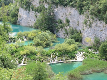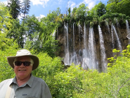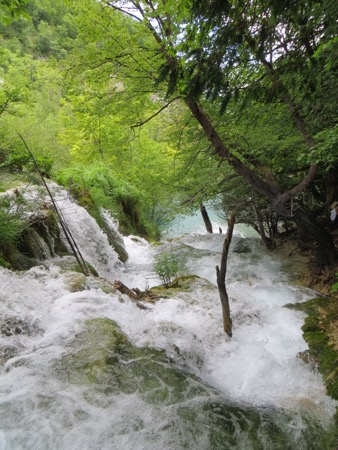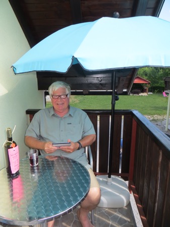 I am on our little porch at the guesthouse. The family works hard to take care of us indulgent tourists. We are back from Plitvice Park a little early as we finished walking all the main trails. I am enjoying the porch to compose and relax with my custom Slovenian wine. Not great but getting it was fun.