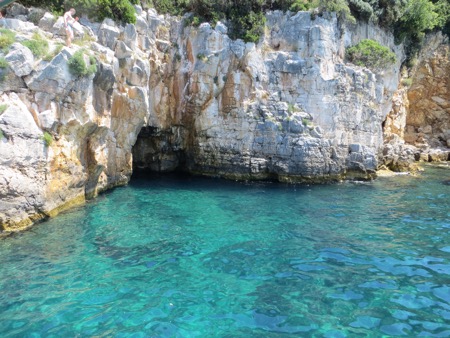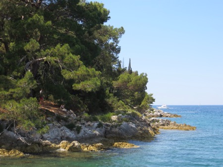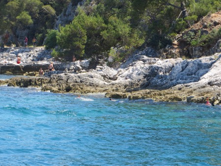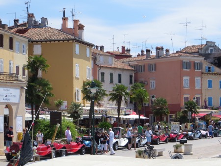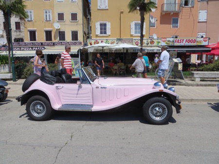 After a enjoyable hour we returned dockside and walked back to our little studio. On the way we walked by a squadron of cute English convertible sports cars on a tour of Croatia and Slovenia. Of course, you need to travel here from England to be able to leave the top down for more than an occasional beak between downpours. It makes sense. Lunch is done so now we head back to the beach for a little swim now that I know that Jaws doesn’t swim in these waters.