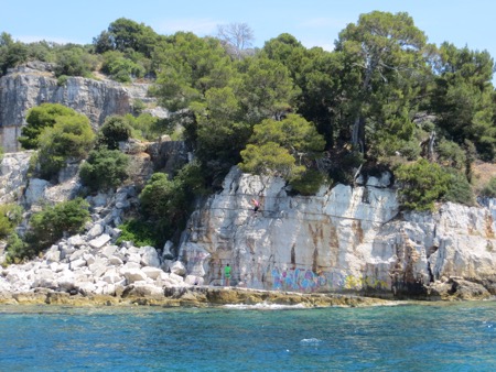 We left the dock in the old town after some delay. They may have been checking how water tight the plexiglass bottom was. The views were worth the journey. We toured a number of islands and inlets. People were swimming bathing with more or less clothing. It was very PG as we kept our distance for the most part. The theme song piped aboard was The Eagles playing Hotel California. Of course, the line about “you can check in but never check out” did acquire a new potential meaning.