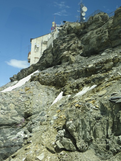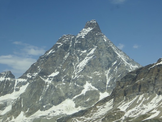 I just learned something: that the Matterhorn is made of shale! Who knew? The closest I’ve been is flying over it, leaving Switzerland for Scotland. Looks very cool there. I’m having snow envy!