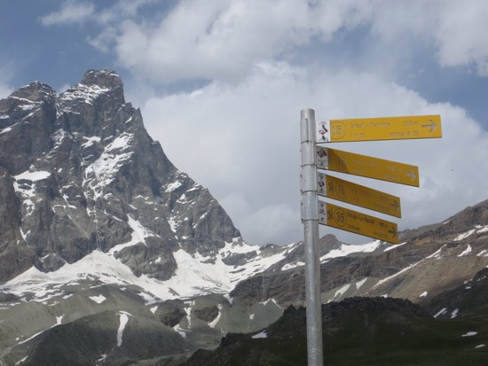 The name is for the same place. The Swiss use Zermatt. The Italians use Cervino and Walt Disney uses Matterhorn to describe this magnificent place. We are approaching it from the Italian side although if it weren’t for the flags, you would have no idea that we are in Italy.