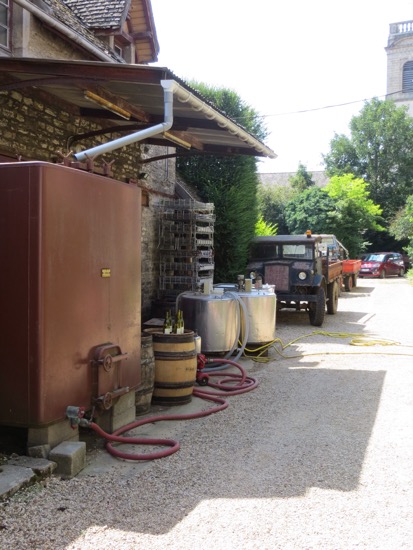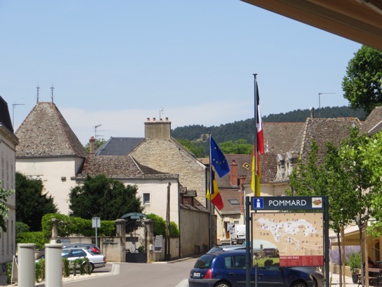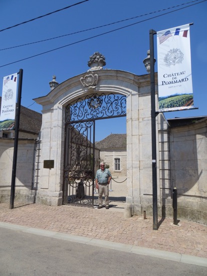 We headed there first but we were forewarned that Papa might not be open with the heat. His place is across the street from the large Chateau de Pommard winery. It is owned by an American that explains the flag on the gate. It also explains the Napa Valley approach to marketing. I passed on the 15 Euro per person tour. I wanted the old Pommard that I remember.