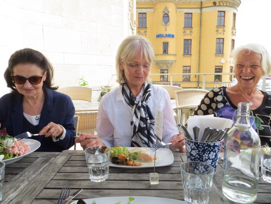 After the usual large Scandinavian breakfast and some schnapps recovery time, we headed for Stockholm with Christina. We were going to meet our other cousins, Lena and Vlva with whom we share common great grandparents. We drove through remarkably civilized streets to see places where our grandfather lived. The buildings are all well maintained and look almost new despite their age. Unfortunately, his birthplace has been replaced by a newer building. At least it wasn’t a McDonalds.