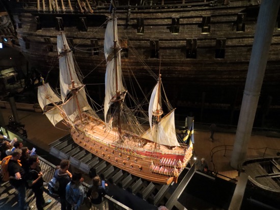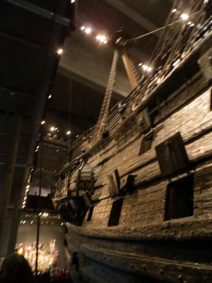 We boarded the local tram and headed for the Vasa Museum. The Vasa was the pride of Gustavus Adolphus’ navy until it sunk within an hour of launching in the Stockholm hour. It was raised and restored over a period of almost thirty years. Today it resides in its own museum near the dock where it was built. While the ship from the 1600’s is impressive, I was more impressed by the efforts of the archeologists and restoration people who worked decades to preserve the ship. The ship stands as a monument to what happens when politicians dictate design to the technicians. It was too tall and not wide enough and tipped over and sunk in the first breeze.