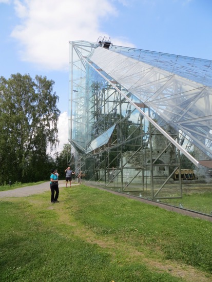 We agreed to work together on our mutual narrative. His son Robert will help with the translations via Google translate. We then embarked on a quick tour of Hamar. We stopped at the ice skating venue for the Lillehammer Olympics. The place is huge. It is built like a gigantic upside down Viking ship. It seats 17,000 instead of a crew of 30. We also visited the “glass church” that covers a Romanesque church destroyed by Swedes. We toured by the homes of Oddbjorn’s kids before returning to his house.