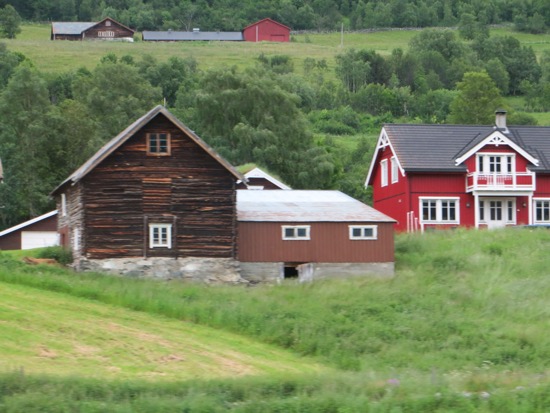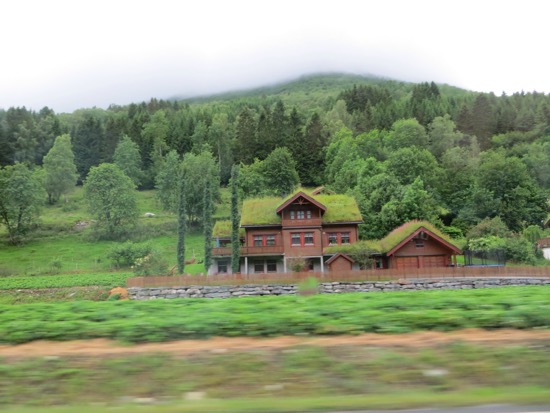 Driver Dave successfully navigated down the switchbacks. We did not encounter any buses which was great. We did drive by some dramatic scenery and seemingly countless water falls. We managed a picnic at a barren spot on top of a plateau. The quick lunch was consumed and we were on our way.We reached Havard’s home in the “sticks” east of Trondheim.