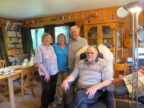 We reached Leirfjord in mid-afternoon. Grethe and her divorced but still friendly husband Jan greeted us. Grethe is my Uncle Hans’  daughter and sister of Cousin Oddbjorn. Uncle Hans passed away in the late 1990’s and his property ended up with Grethe. She manages to keep the birds and squirrels happy on the more than twenty acres that she lives on. Jan helped as our translator as we caught up on family history.
